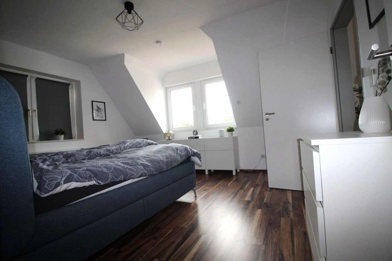 Außenjalousien sorgen für Kompfort und Privatsphäre. Der Dachboden ist mit einem Fenster, Licht